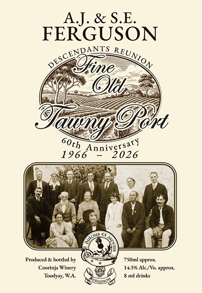 The local Toodyay business Coorinja Winery is producing an excellent vintage tawney port to celebrate the reunion and the brief from the organisers was to design a suitable label for the bottles. It had to include a photograph of the Ferguson ancestorial family taken in the early 1900's.